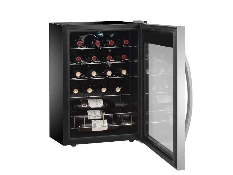 Wine cooler, Compressor cooling, 19 bottle capacity, Auto defrost, single zone, digital display, compact size, freestanding