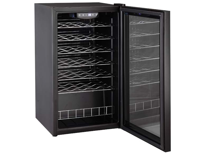 This spacious freestanding wine cooler provides temperature-controlled storage for up to 35 bottles using an energy efficient compressor cooling system.