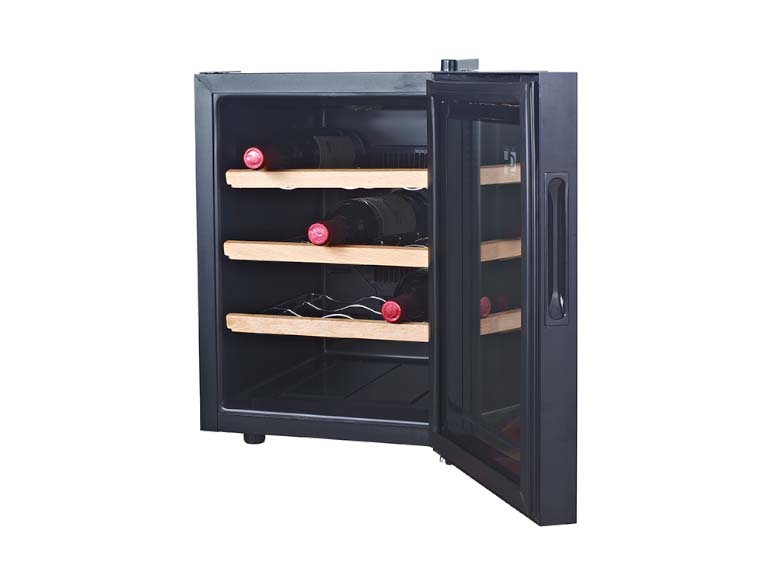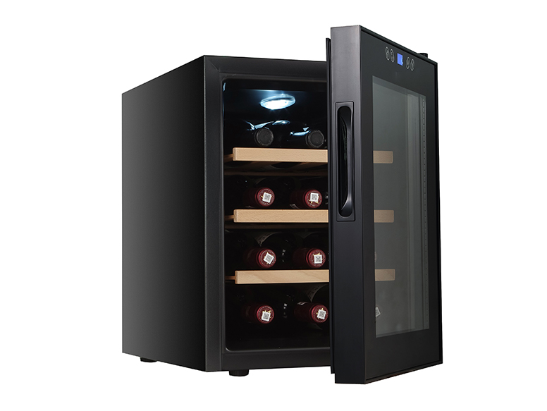 Wine cooler, thermoelectric cooling, 12 bottle capacity, Air cooling, compact size, table top, Ultra silent, Price cheap, single zone, Frost free, digital display, Gift of Choice