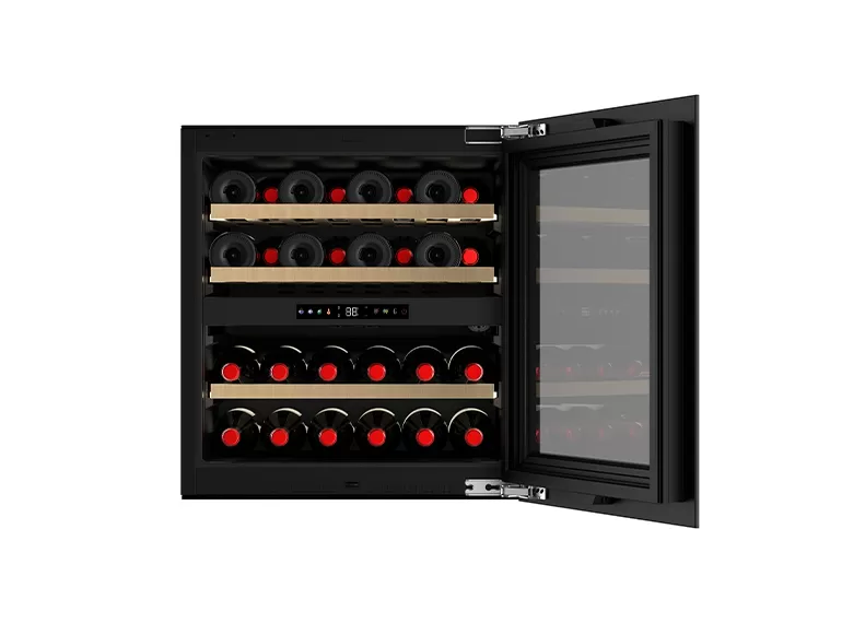 Wir verstehen die Bedeutung von Zugänglichkeit und Sichtbarkeit für Ihre Weinsammlung. Unsere Einbau-Weinkühler sind mit digitalen Displays ausgestattet, die es Ihnen ermöglichen, die Temperatur leicht zu überwachen und anzupassen. Darüber hinaus beleuchtet die interne LED-Beleuchtung Ihre Weinflaschen, sodass Sie mühelos durch Ihre Sammlung blättern können, ohne den Kühler öffnen zu müssen. Dies verbessert nicht nur die visuelle Anziehungskraft, sondern reduziert auch die Notwendigkeit, Ihren Wein externen Lichtquellen auszusetzen.
