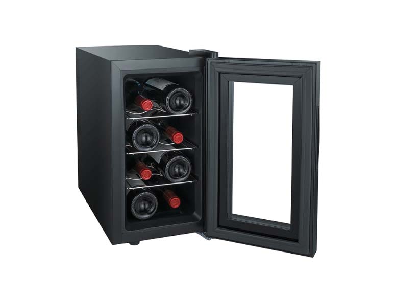 This 8-bottle wine cooler adopts the latest thermoelectric semiconductor technology with ultra-quiet and frost-free advantages.