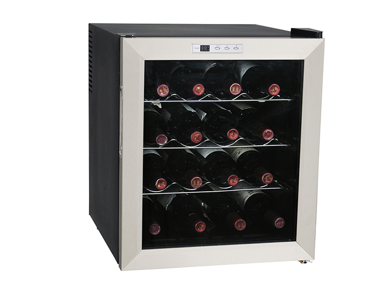 Wine cooler, thermoelectric cooling, 16 bottle capacity, Air cooling, compact size, table top, Ultra silent, Price cheap, single zone, Frost free, digital display, Gift of Choice