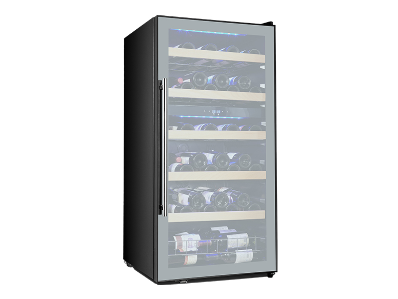 This freestanding dual zone wine cooler provides compressor cooling for up to 84 bottles of wine while maintaining a compact and space-efficient design. Two independent temperature zones are precisely controlled using digital displays, allowing you to separately chill reds, whites and champagnes at their optimum temperature. Auto defrost function reduces hassle by preventing ice buildup in each zone. The interior convection fan gently circulates air for consistent temperatures throughout the cabinet. An anti-vibration system and adjustable leveling feet provide a stable environment for wine storage and aging. Optional wooden or chromed racks allow for flexible organization and attractive display of your collection. Maintain the perfect climate for preserving and enjoying your wines with this high-quality, dual-zone wine cooler. Powerful compressor cooling maintains the set temperatures in each zone while efficiently. With a capacity of 84 bottles, this versatile wine cooler lets you store and serve diverse wines at their ideal temperature. Easily adjust and monitor the temperature of each zone separately using the digital displays. Ideal for wine connoisseurs and entertaining, this dual-zone wine cabinet provides the consistent temperature control for chilling reds, whites and champagnes. Convenient auto defrost reduces hassle, giving you more time to savor your wines. Keep all your treasured wines perfectly chilled and ready to pour at a moment's notice with this stylish yet compact, dual-zone wine cooler. Separately control and monitor each zone to maintain the optimum climate for preserving and aging your reds, whites and champagnes. Attractively organize and display your collection on wooden or chromed slide-out racks. Front ventilation and convection cooling provide an efficient, stable temperature environment for your wines around the clock. Maintain the perfect temperature for any vintage or varietal with this high-quality,freestanding dual zone wine cabinet. Precisely adjust and regulate each zone independently for the ideal climate to chill and protect your wines.