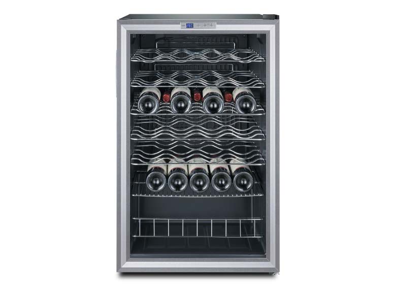 This spacious wine cooler provides temperature-controlled storage for up to 48 bottles using an energy efficient compressor cooling system.