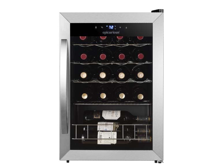 This freestanding wine cooler has a capacity of 19 bottles and utilizes an energy efficient compressor cooling system to maintain the internal temperature between 4 -18°C/40-65°F. It features a sleek design with a black cabinet and stainless steel trim that complements any decor.An auto-defrost function prevents the buildup of ice for optimum cooling performance and longevity. A digital display shows the internal temperature which can be adjusted via an intuitive control panel.