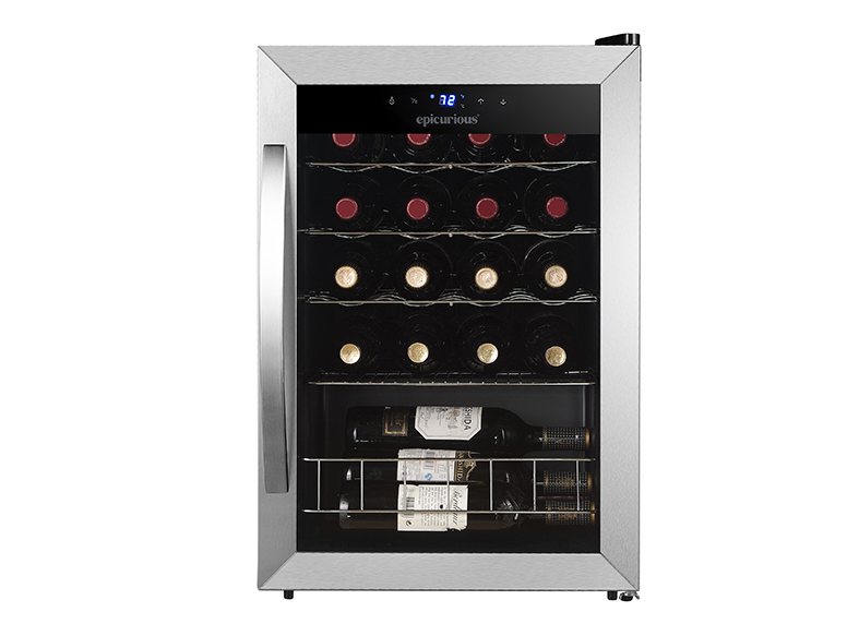 This freestanding wine cooler has a capacity of 19 bottles and utilizes an energy efficient compressor cooling system to maintain the internal temperature between 4 -18°C/40-65°F. It features a sleek design with a black cabinet and stainless steel trim that complements any decor.An auto-defrost function prevents the buildup of ice for optimum cooling performance and longevity. A digital display shows the internal temperature which can be adjusted via an intuitive control panel.