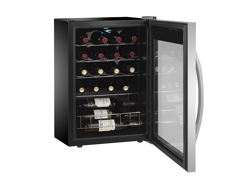 Wine cooler, Compressor cooling, 19 bottle capacity, Auto defrost, single zone, digital display, compact size, freestanding