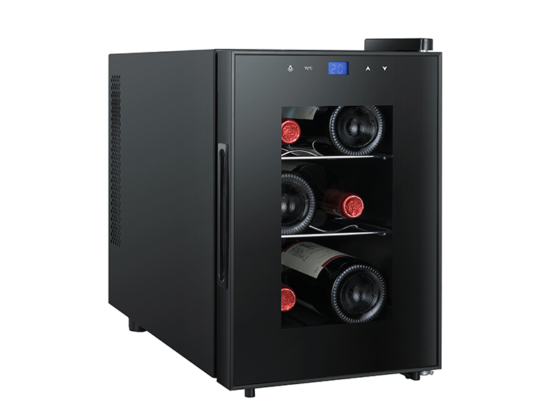 Wine cooler, thermoelectric cooling, 6 bottle capacity, Air cooling, compact size, table top, Ultra silent, Price cheap, single zone, Frost free, digital display, Gift of Choice
