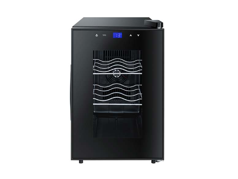 This wine cooler adopts an ultra-silent frost-free thermoelectric cooling system, which provides storage space for 6 bottles on the desktop. It has a compact appearance and minimalist design, perfect for home use.