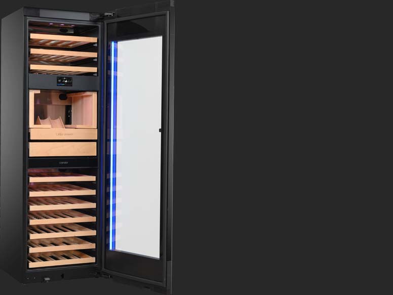 RGB lighting and a deodorizing air guide plate.  Variable frequency compressor cooling silently maintains precise temperatures in each zone. Three independent temperature zones allow you to chill red, white and sparkling wines at their optimal temperatures. Built-in or freestanding installation options suit your kitchen space and preferences.A rock finish tempered glass door protects while showcasing your collection. A fingerprint lock provides security.