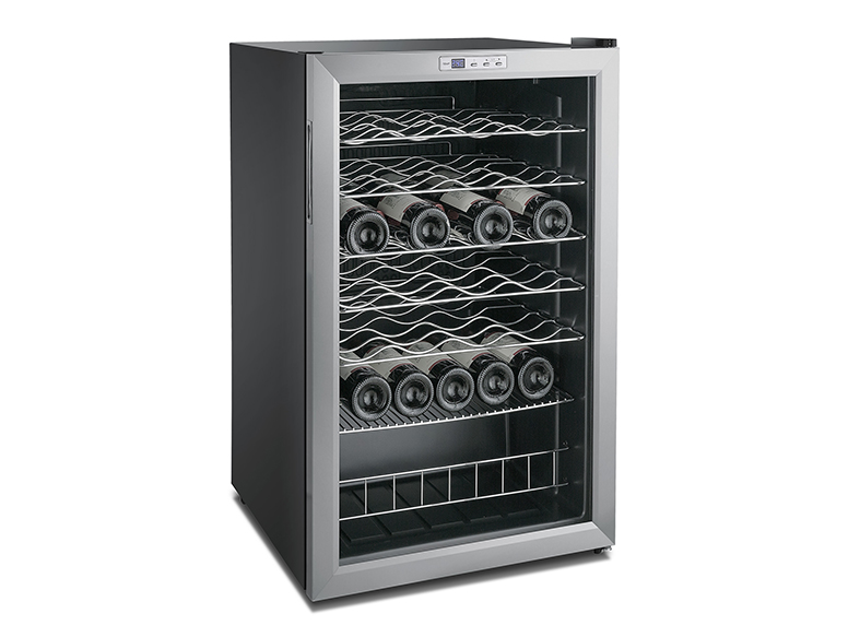 This spacious wine cooler provides temperature-controlled storage for up to 48 bottles using an energy efficient compressor cooling system.