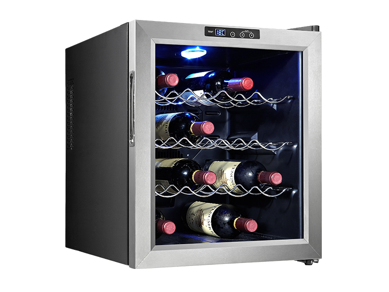 This wine cooler adopts advanced thermoelectric cooling technology, providing ultra-silent, frost-free refrigeration and a large capacity of 16 bottles.