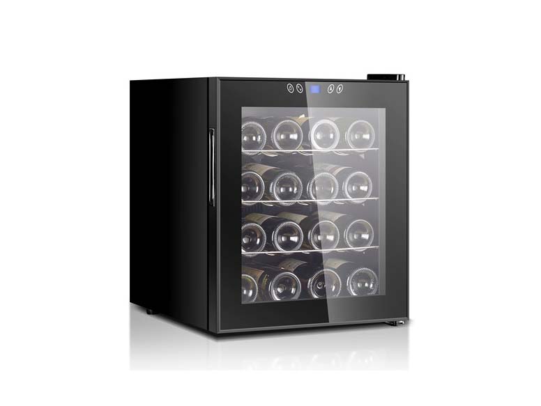 Wine cooler, thermoelectric cooling, 16 bottle capacity, Air cooling, compact size, table top, Ultra silent, Price cheap, single zone, Frost free, digital display, Gift of Choice
